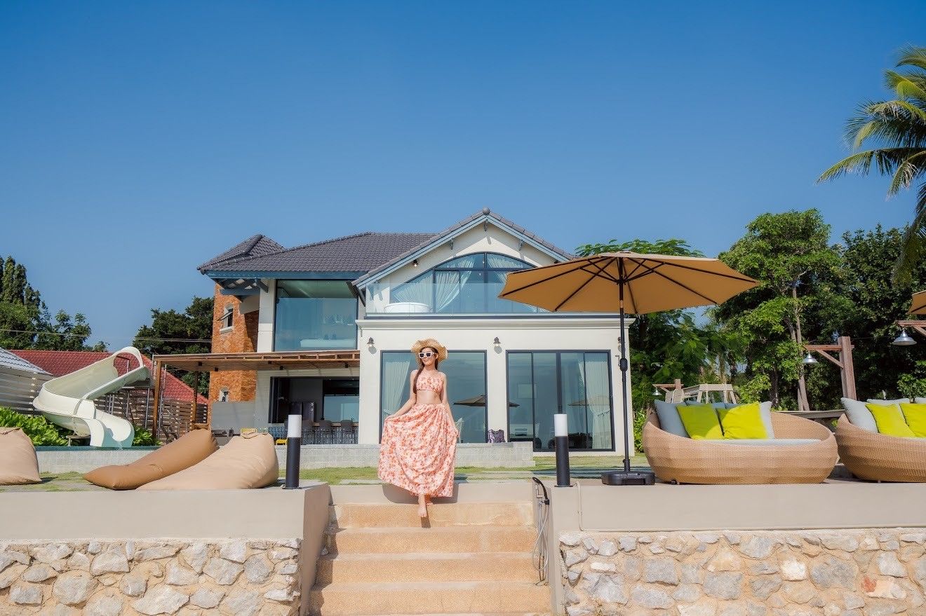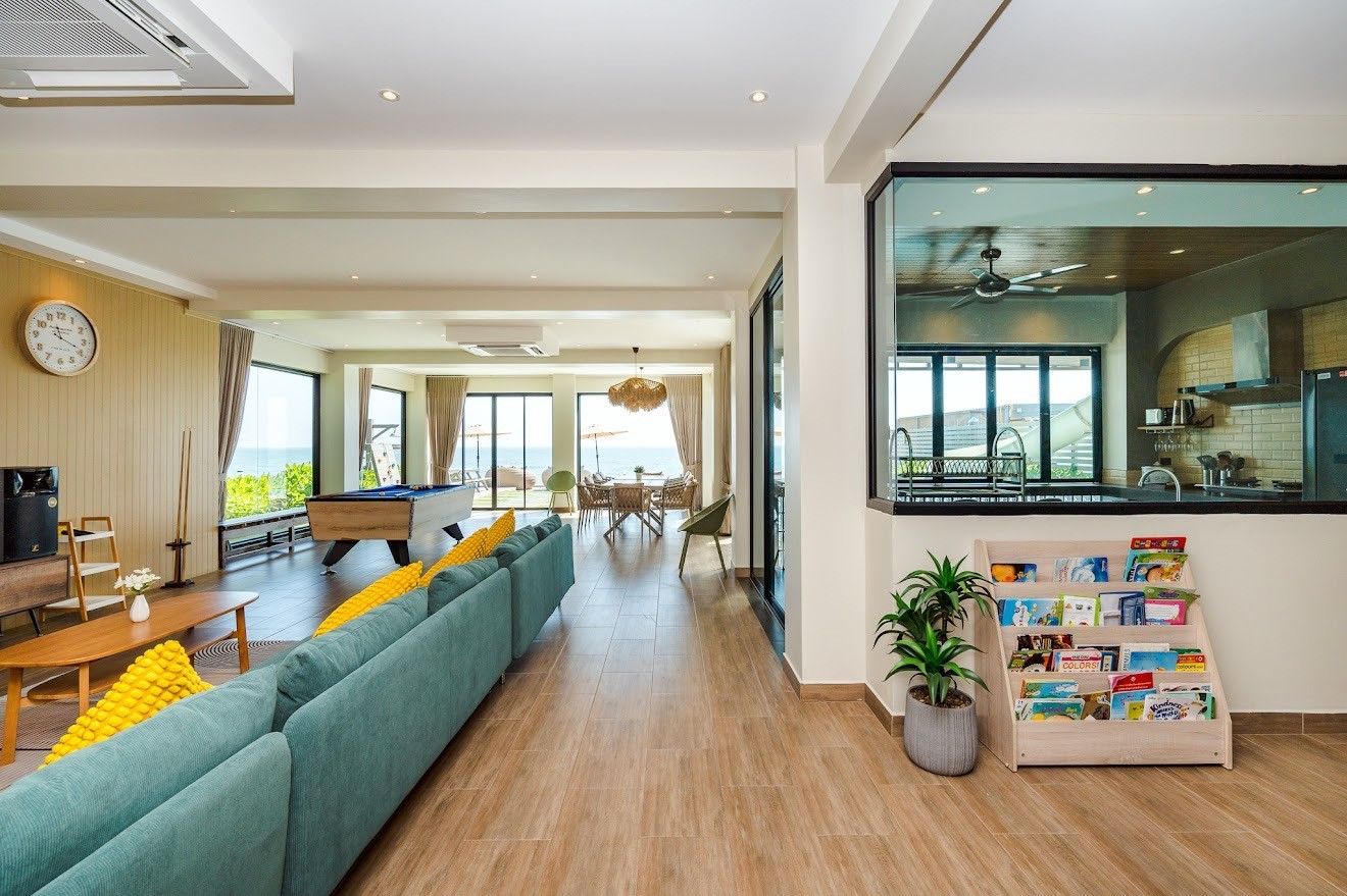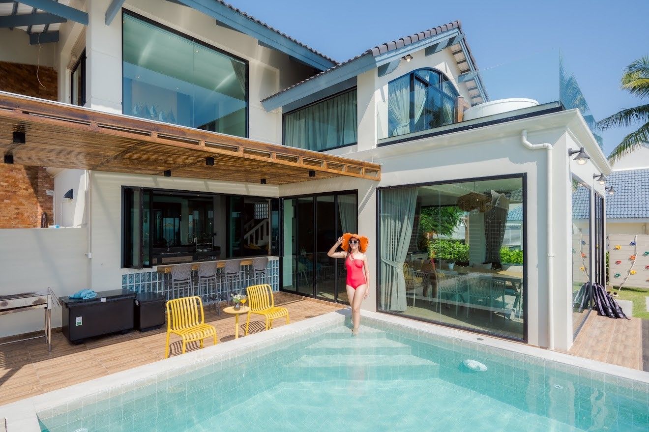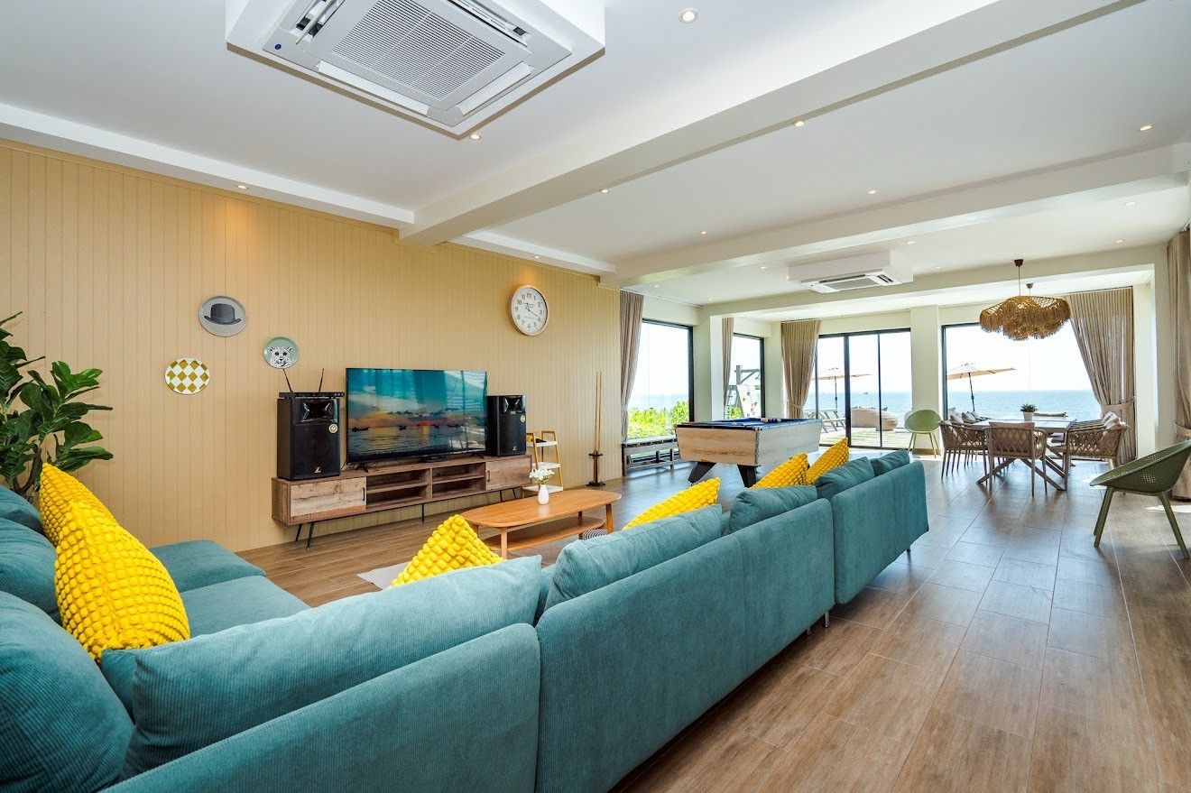 The villa comes with private pool, beachfront access, karaoke, BBQ grill, pool table, water slide, Wi-Fi, a fully equipped kitchen. There are 15 amenities in total. See the full list in the amenities section above.