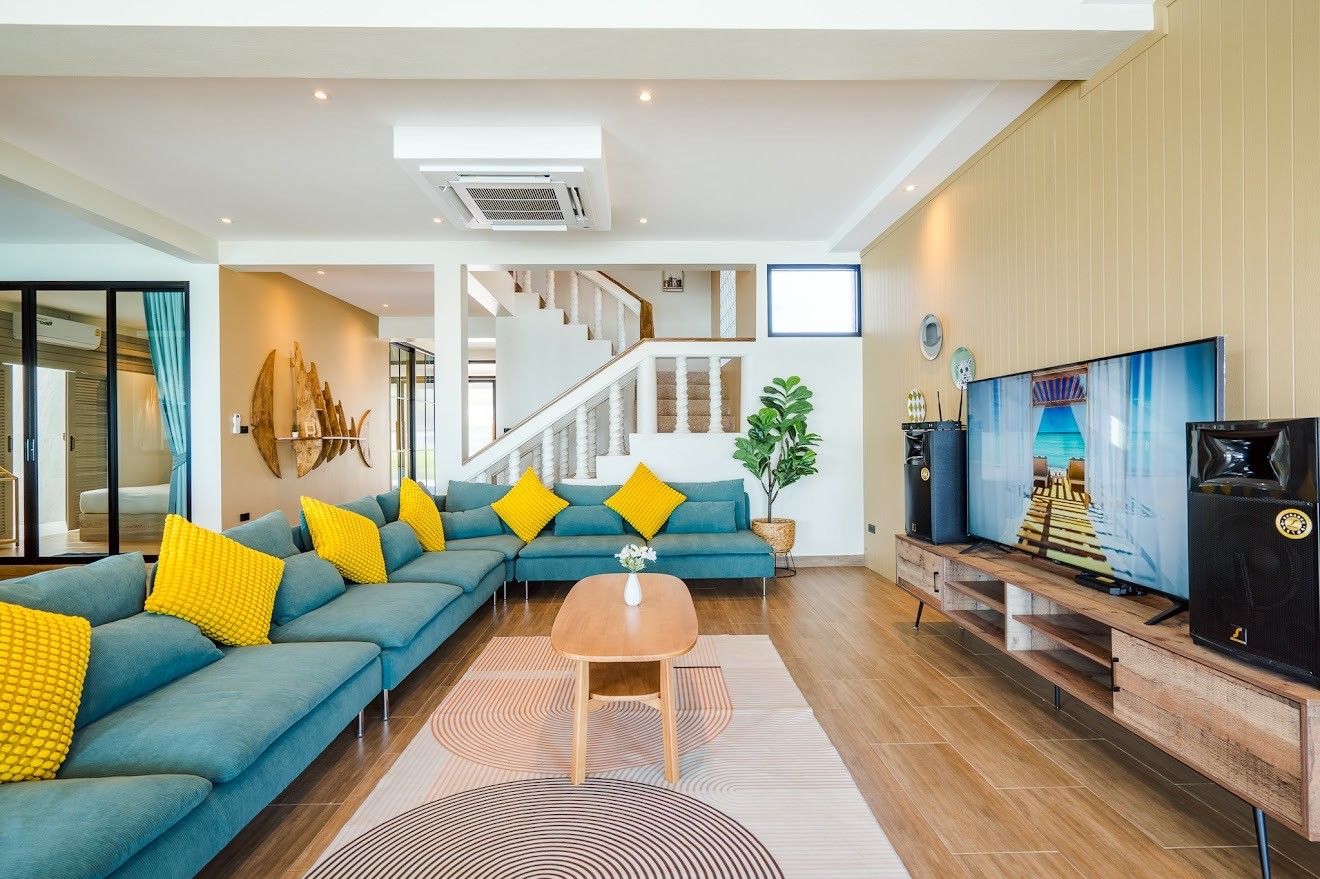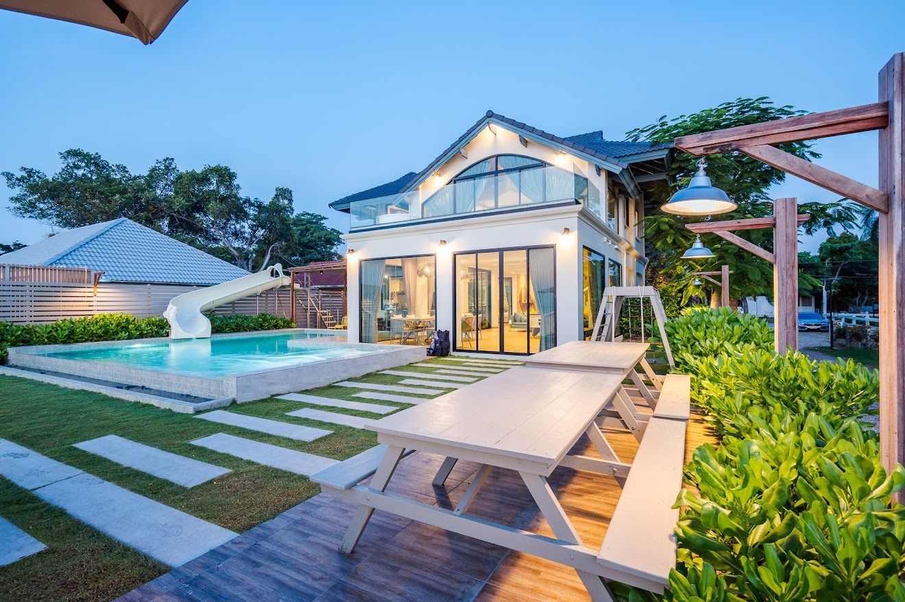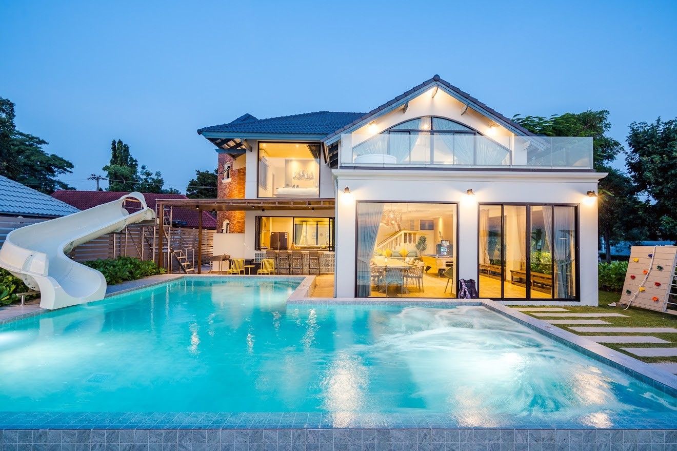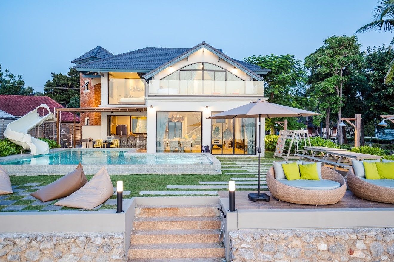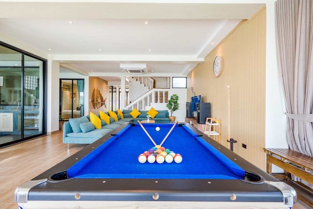 Beach Mood VI Pool Villa fits up to 25 guests across 6 bedrooms. The villa has karaoke, BBQ grill, pool table, water slide for entertainment. Events and gatherings need prior approval. Contact us on LINE to discuss your plans.