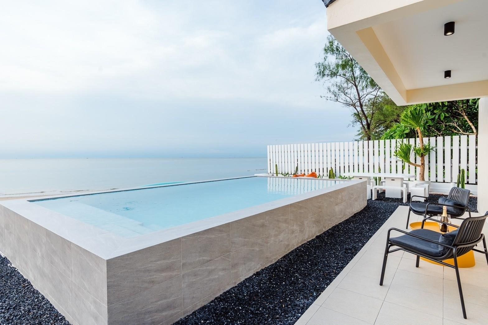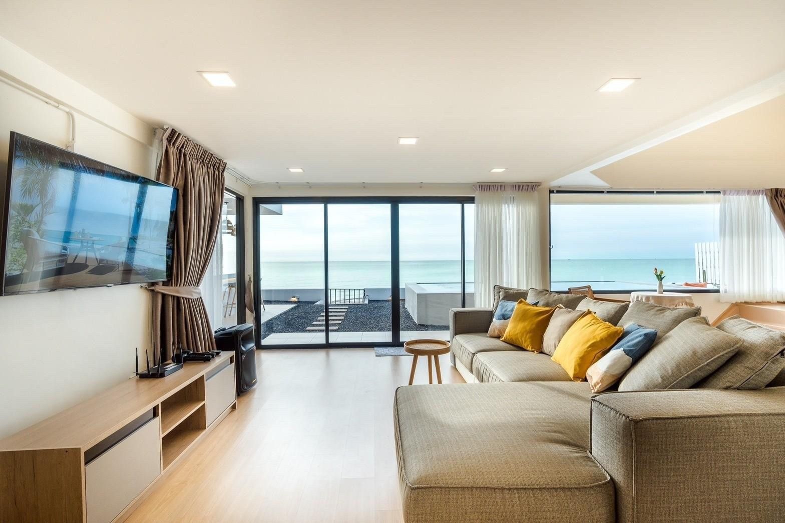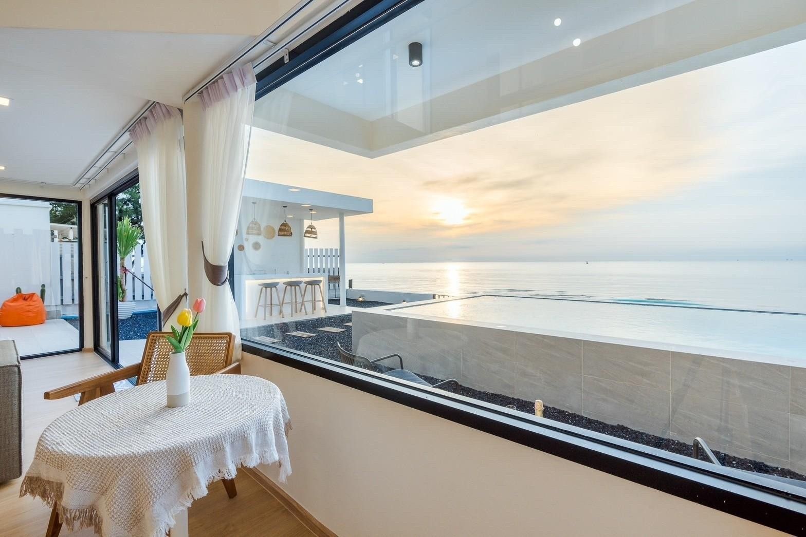 Glass-roof bathroom, 180° sea-view pool, karaoke. Beachfront Cha-Am.