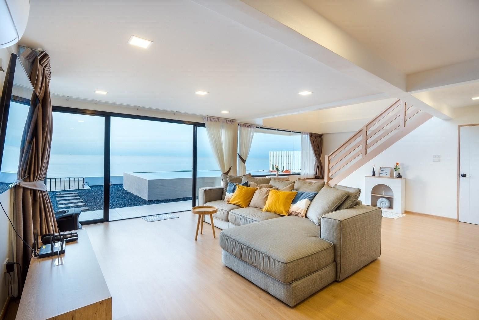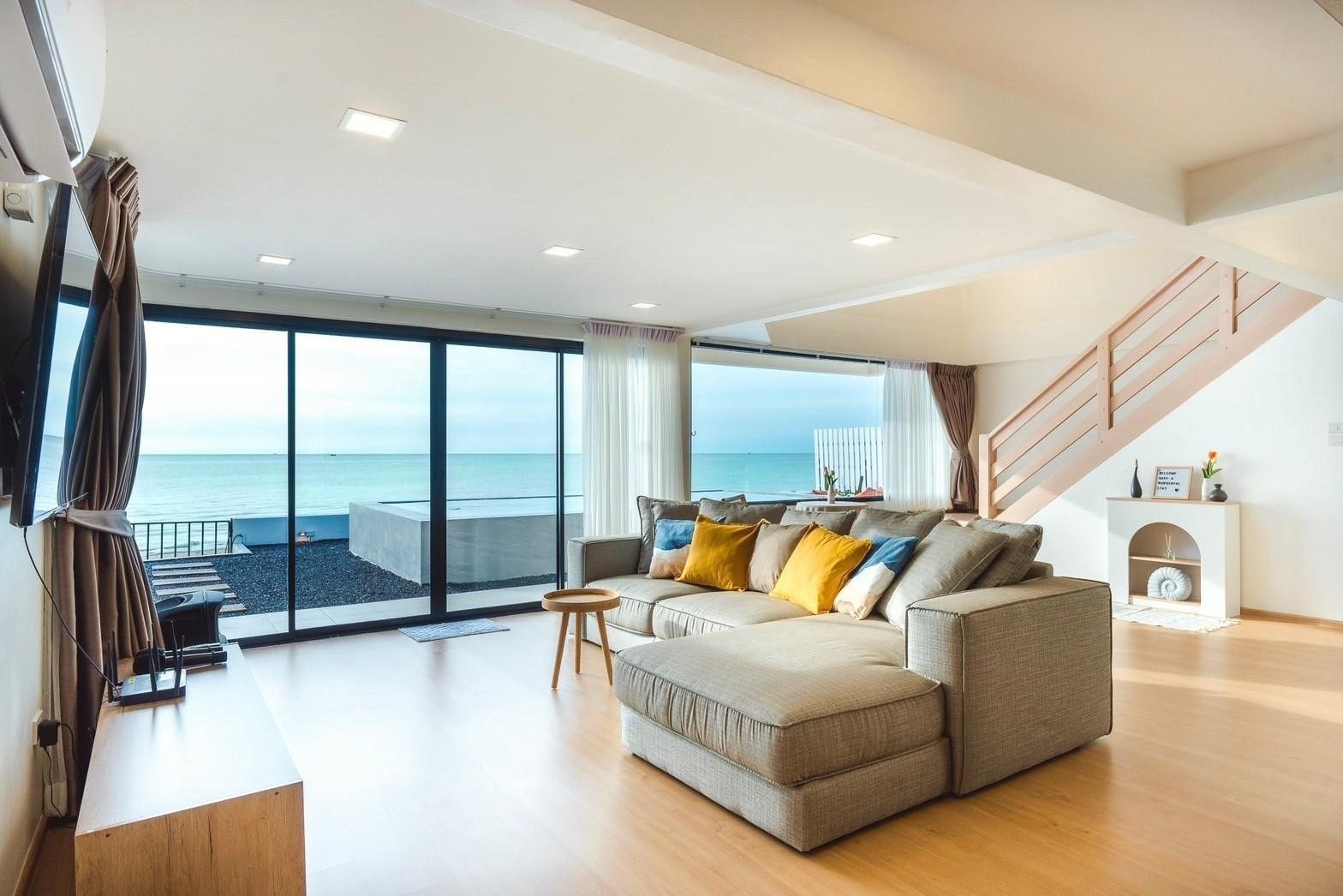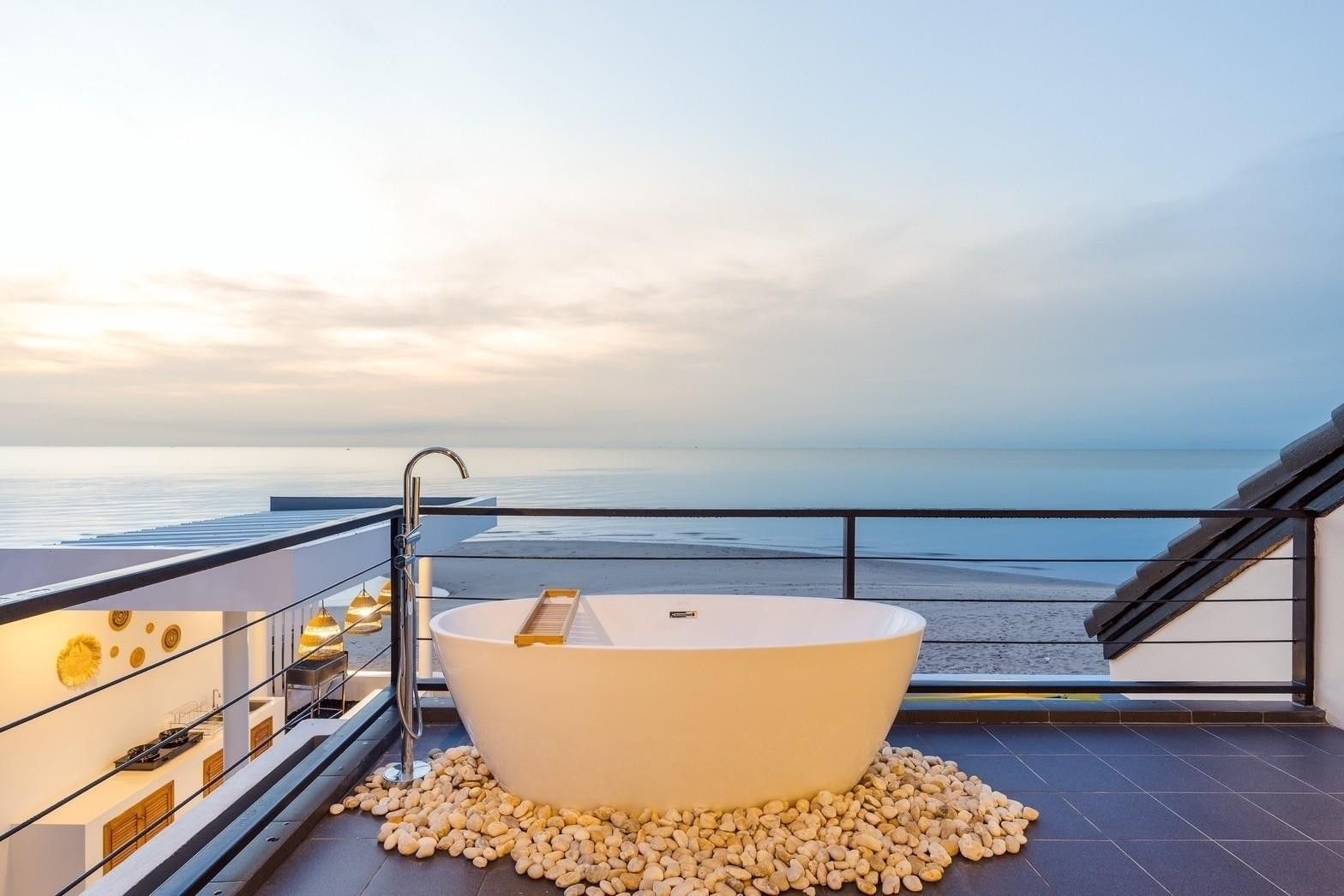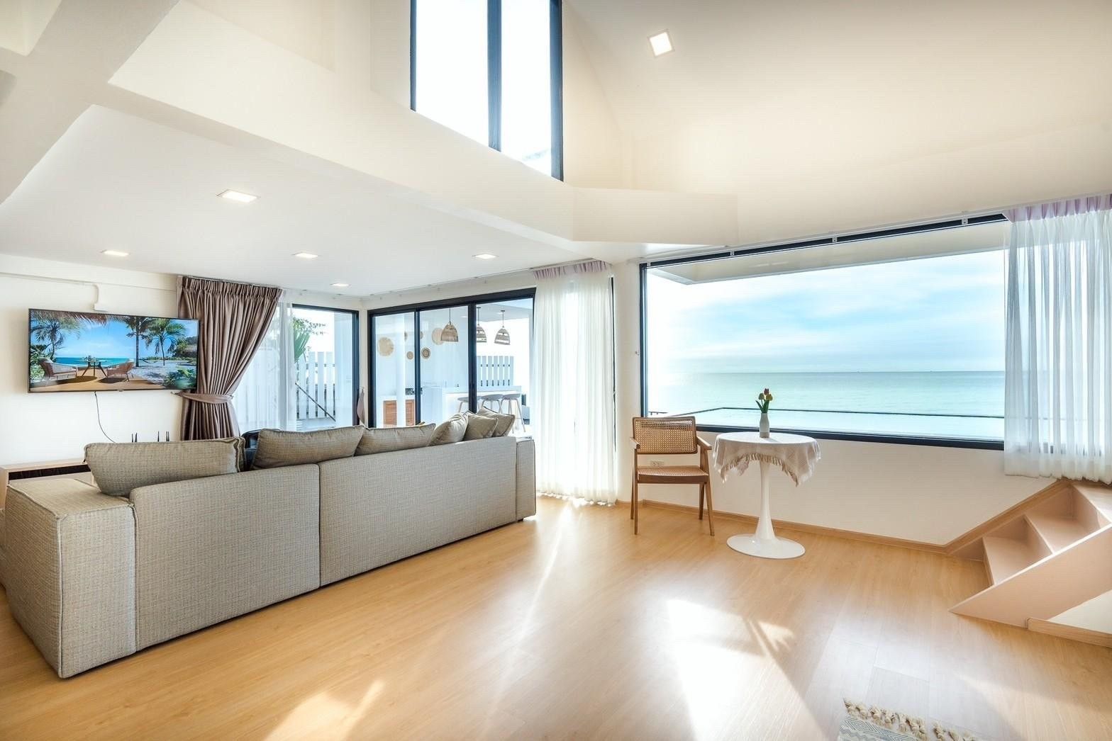 Glass-roof bathroom, 180° sea-view pool, karaoke. Beachfront Cha-Am.