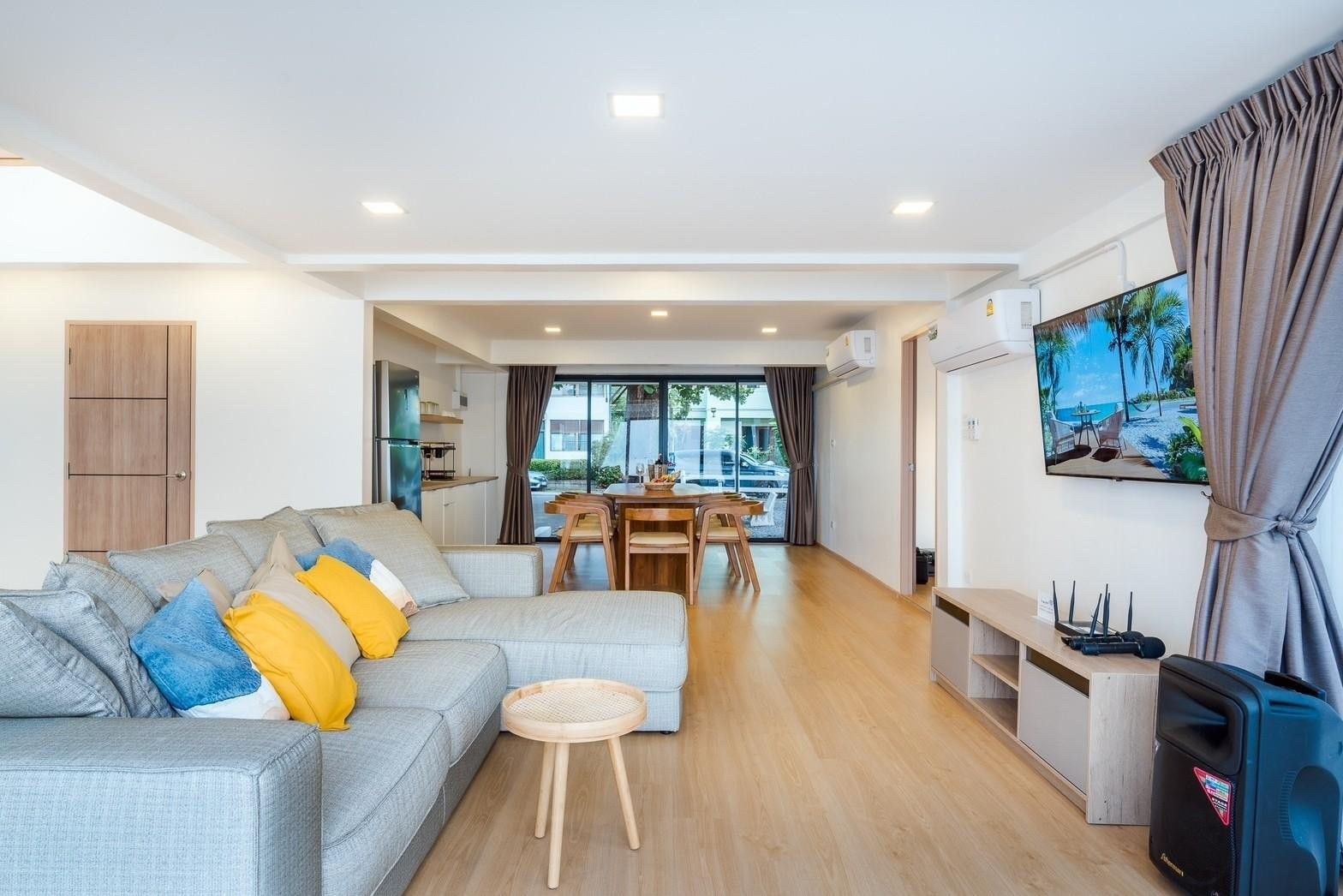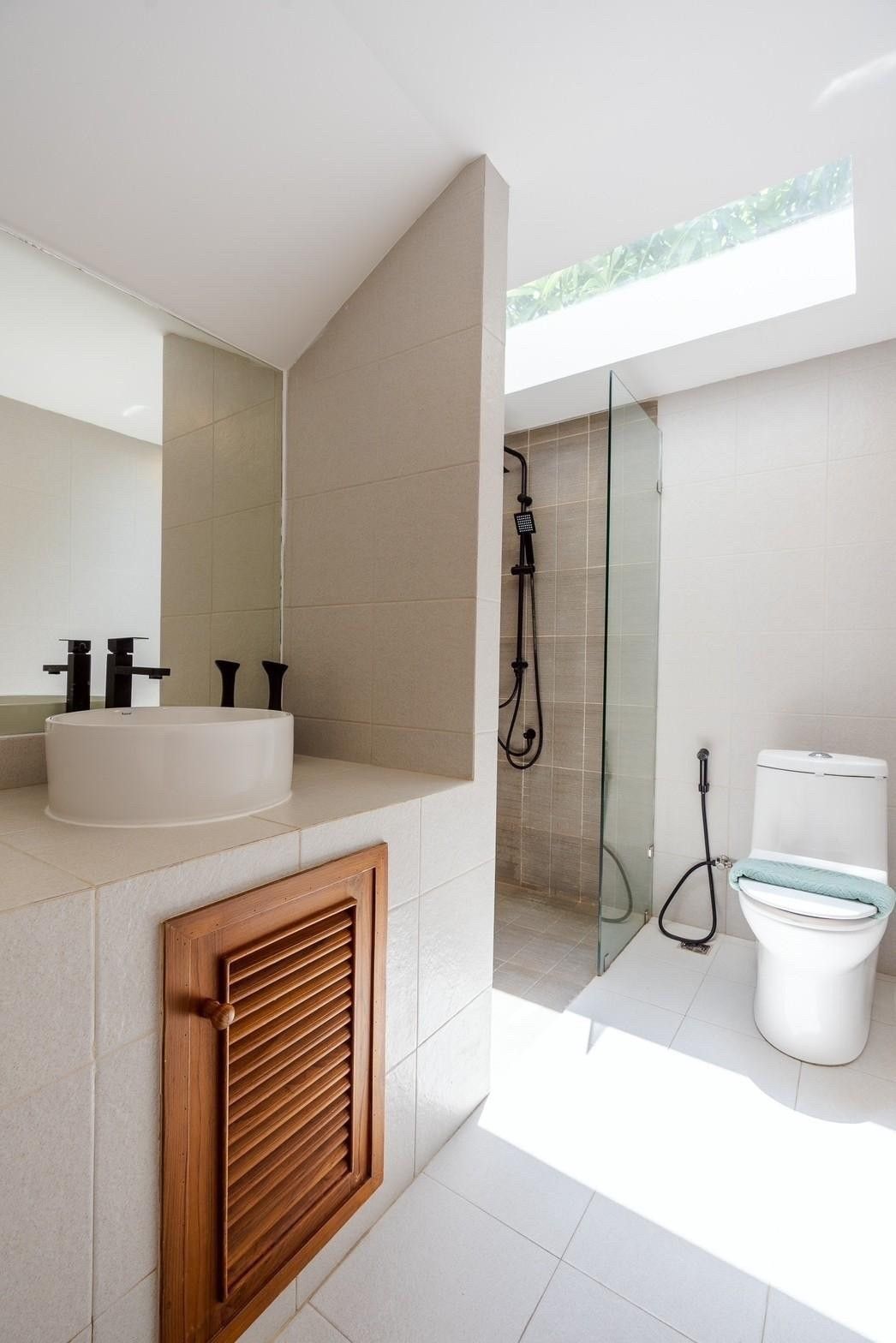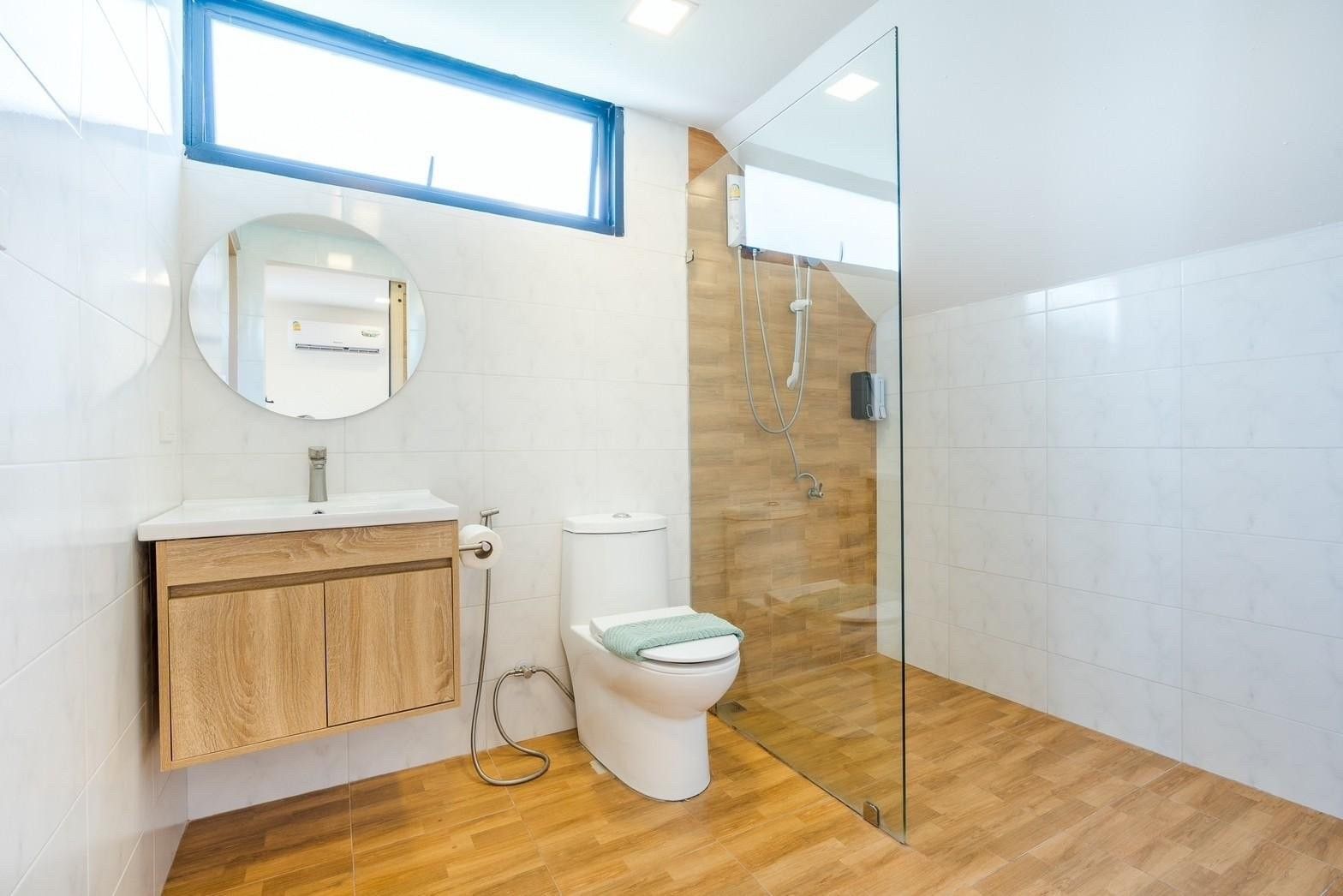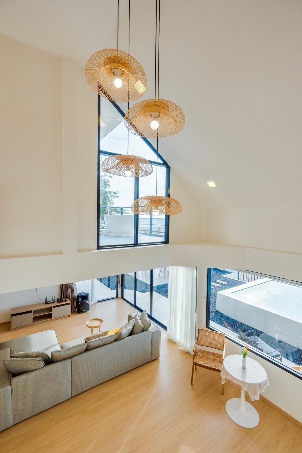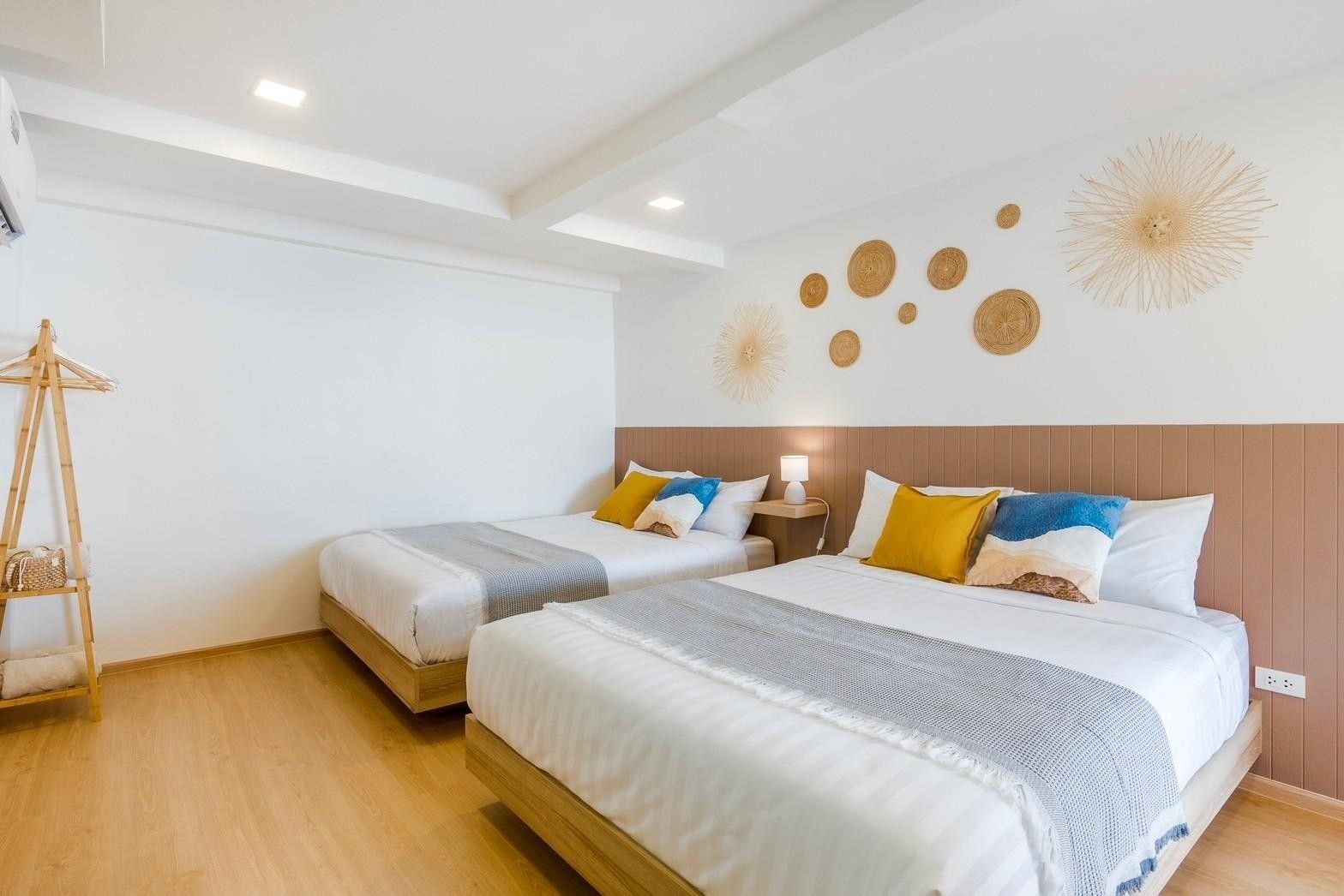 A newly opened beachfront villa on the Cha-Am coast, Costa IV blends English, Balinese, and minimalist design into a truly photogenic retreat. Four bedrooms and three bathrooms are arranged around a private pool with uninterrupted 180-degree sea views, and the standout glass-roof bathroom is unlike anything else in the area. Complimentary SUP board, kayak, ice, water, and BBQ charcoal are included — along with a welcome snack set. Karaoke, a 55-inch Smart TV, and both an indoor and outdoor kitchen make it equally suited to relaxed family stays or lively group getaways.