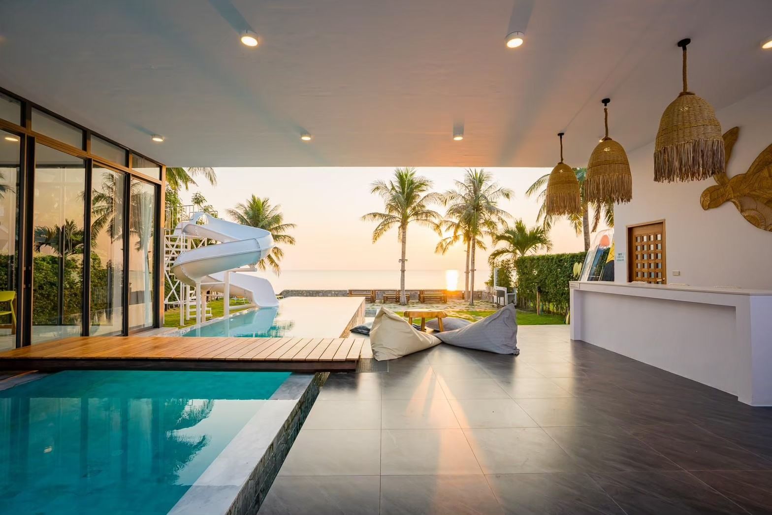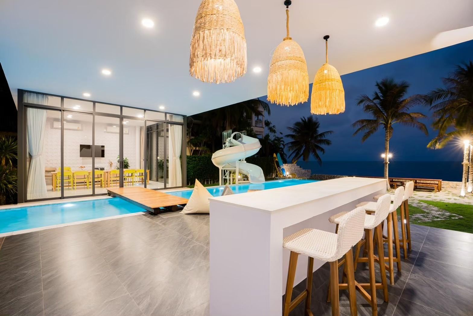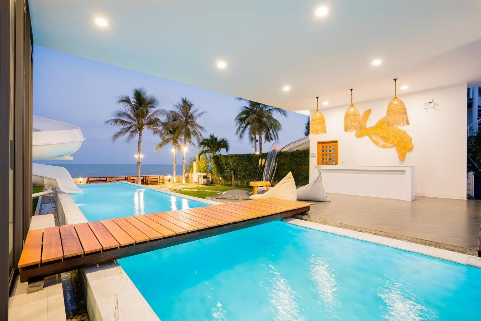 The villa comes with private pool, karaoke, BBQ grill, pool table, water slide, Wi-Fi, a fully equipped kitchen. There are 11 amenities in total. See the full list in the amenities section above.