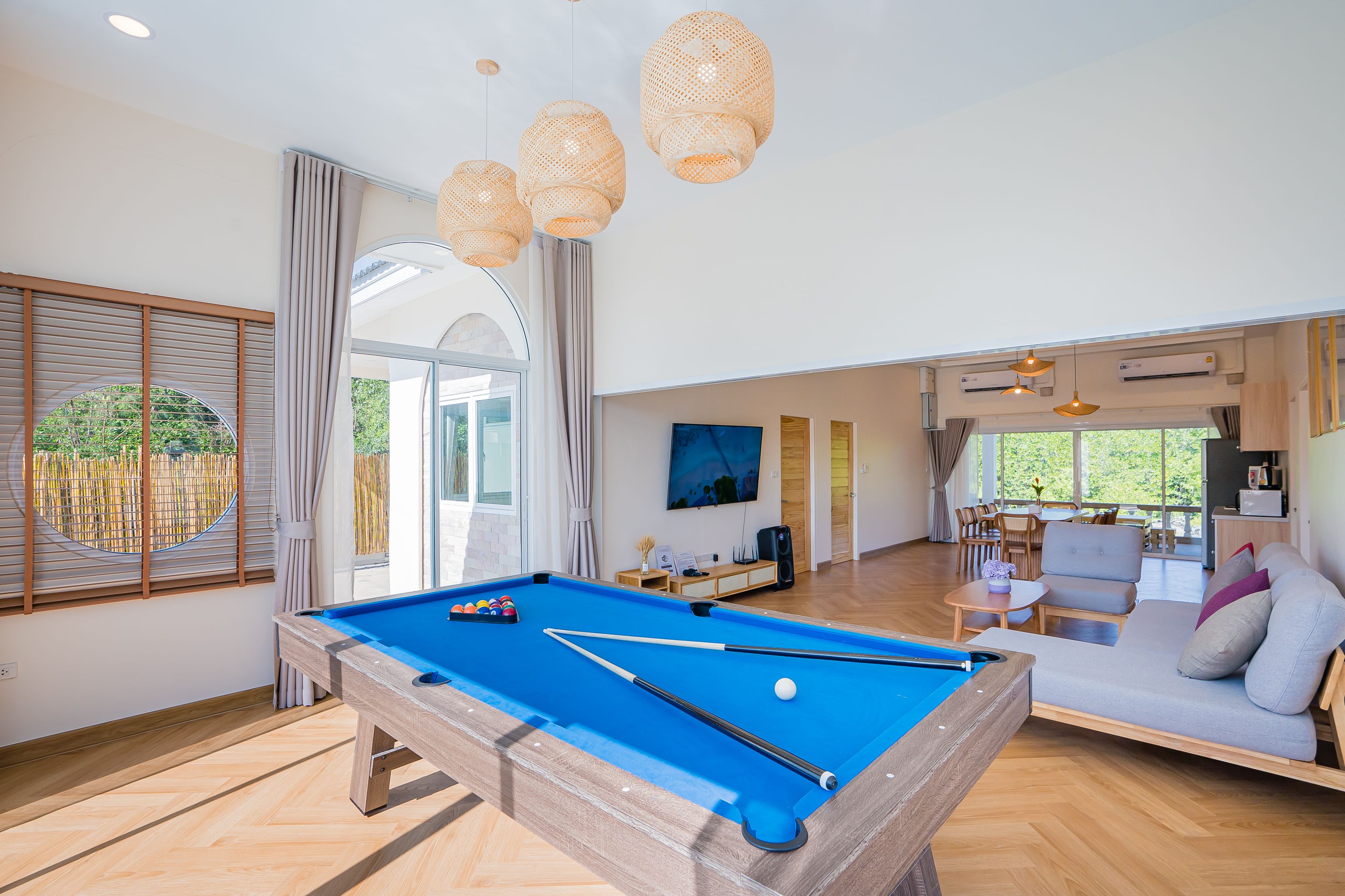 The villa comes with private pool, beachfront access, karaoke, BBQ grill, Wi-Fi, a fully equipped kitchen. There are 12 amenities in total. See the full list in the amenities section above.