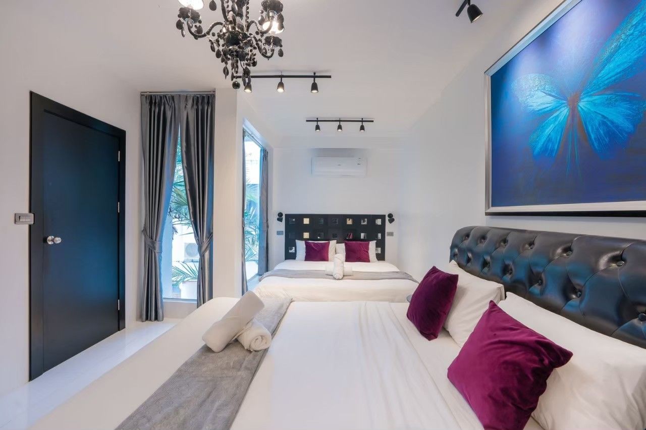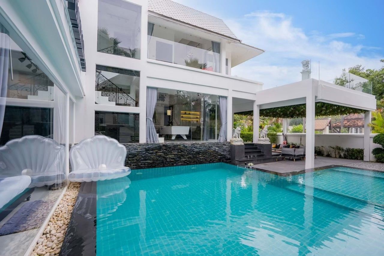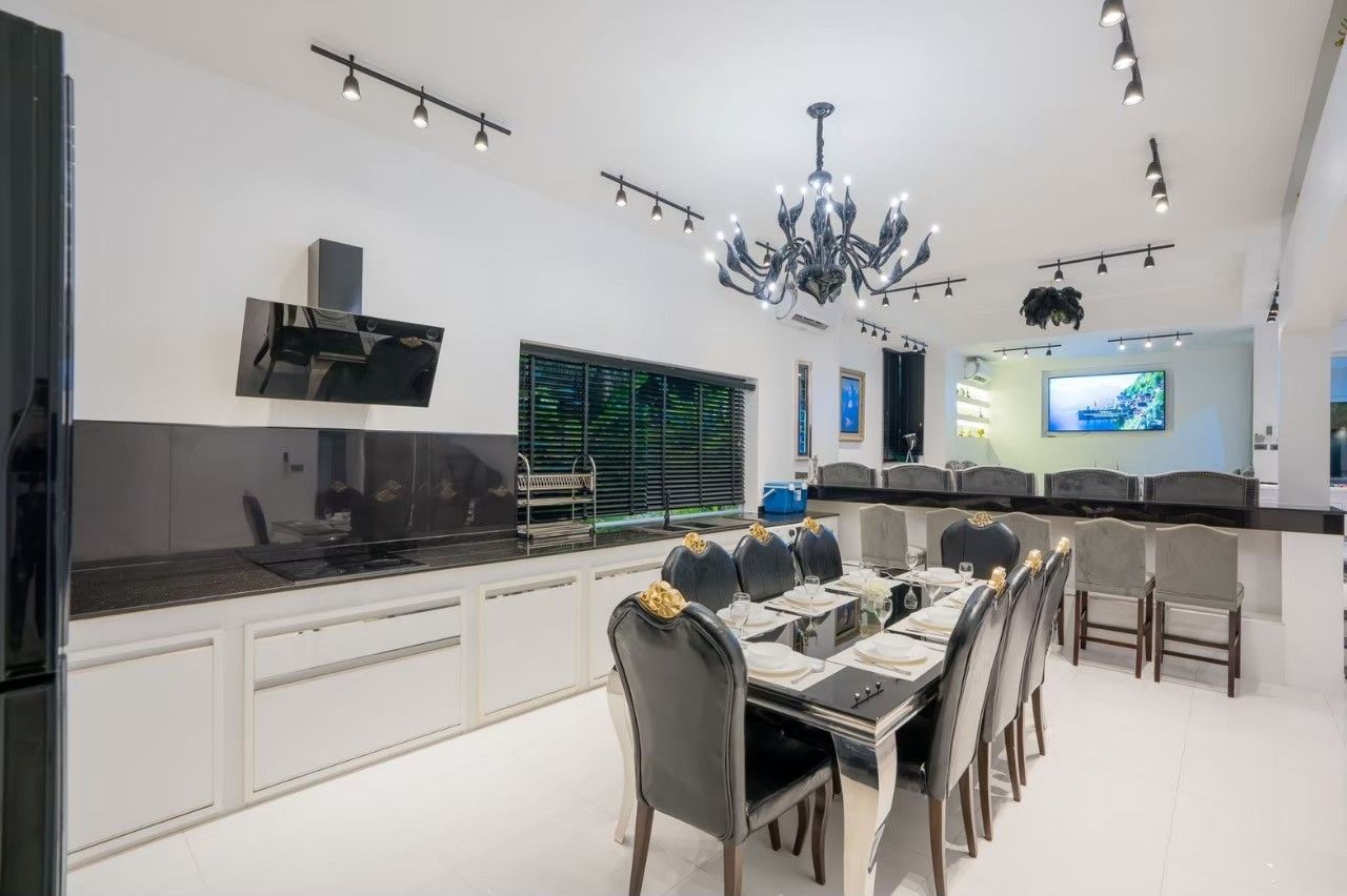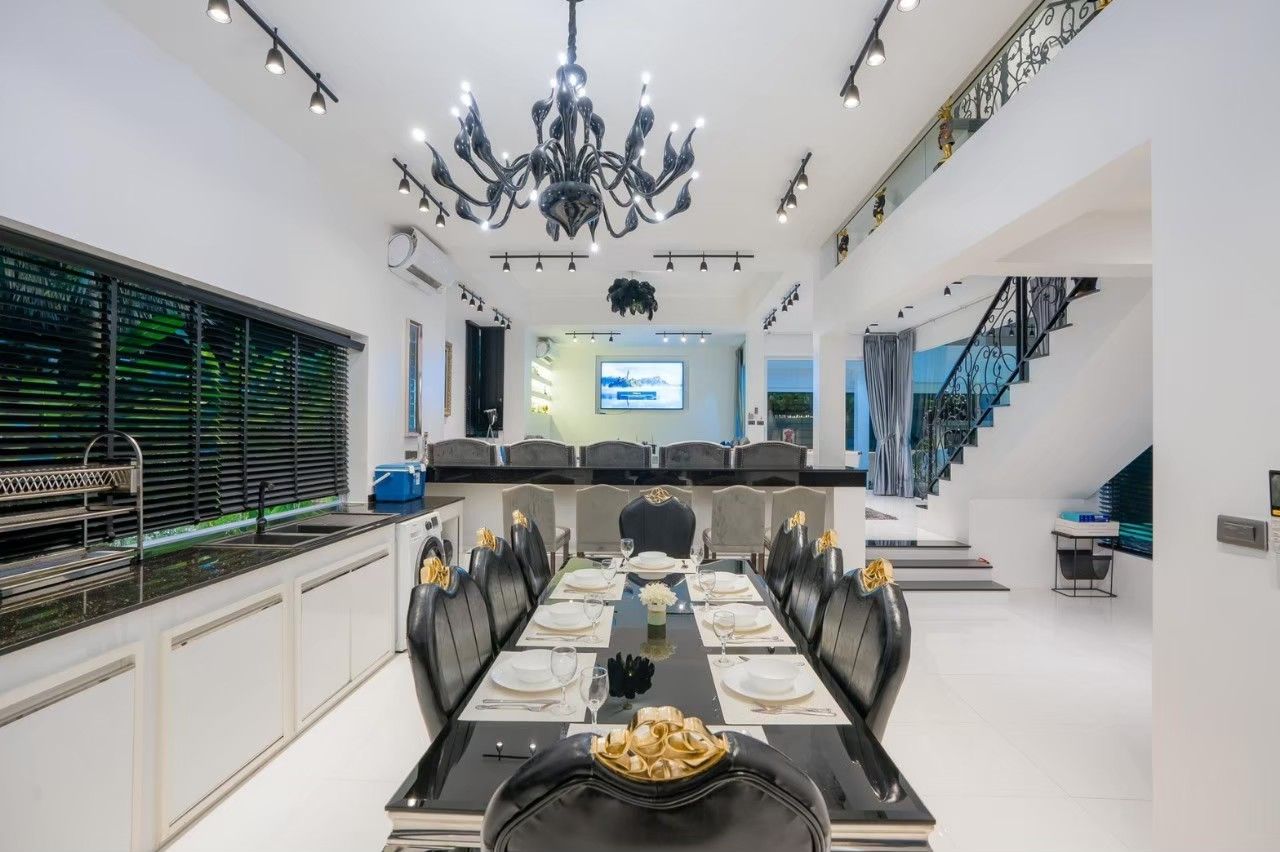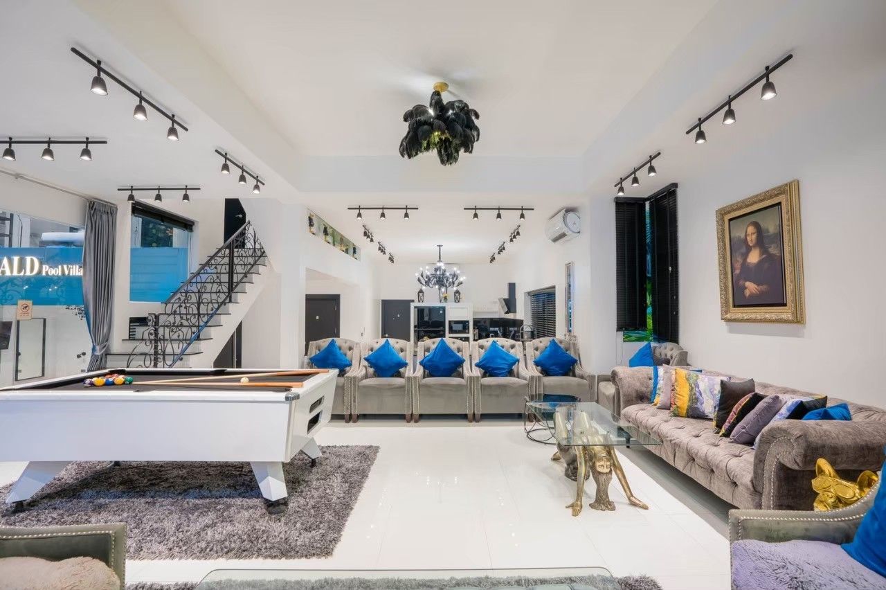 A spacious and fully equipped pool villa designed for large groups, family gatherings, and private parties. Located just minutes from Jomtien Beach, Emerald VII offers the perfect balance of privacy, comfort, and fun across 7 bedrooms and 7 bathrooms. The modern-design villa features a private swimming pool with water slide, karaoke system, pool table, BBQ grill, and a fully equipped kitchen — everything you need for an unforgettable stay. Small pets are welcome, and private parking is available on-site.