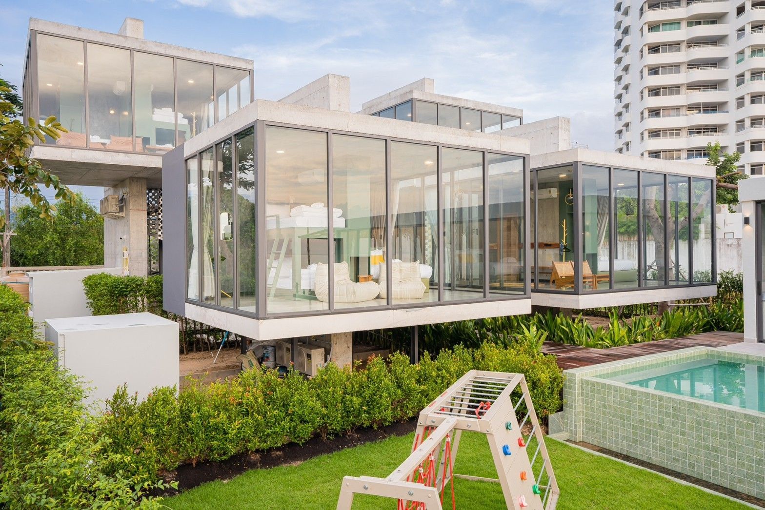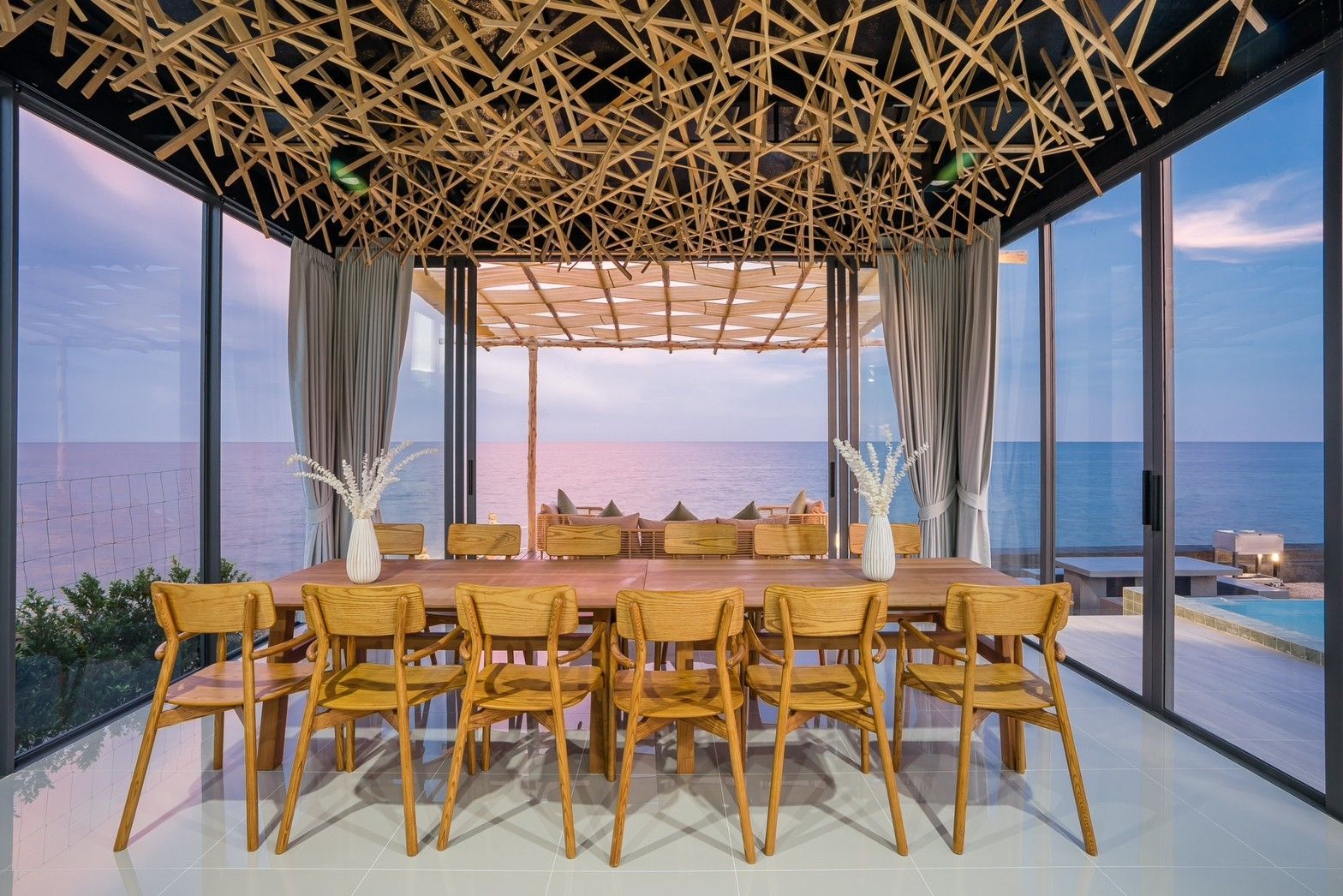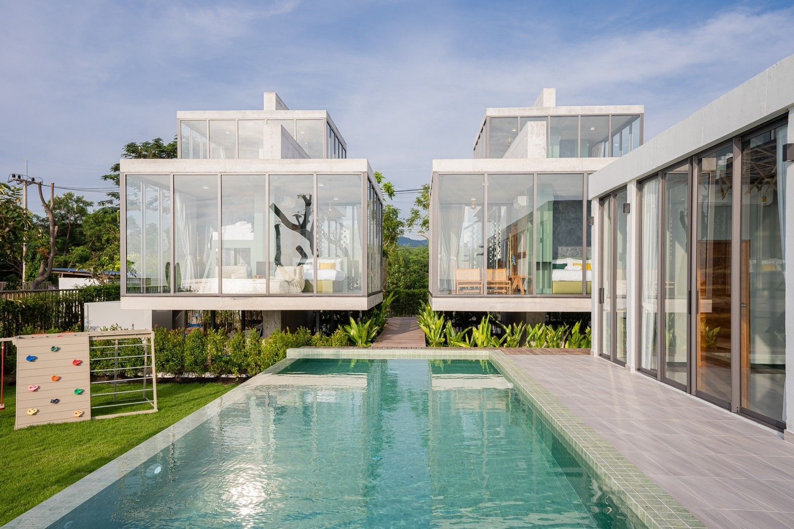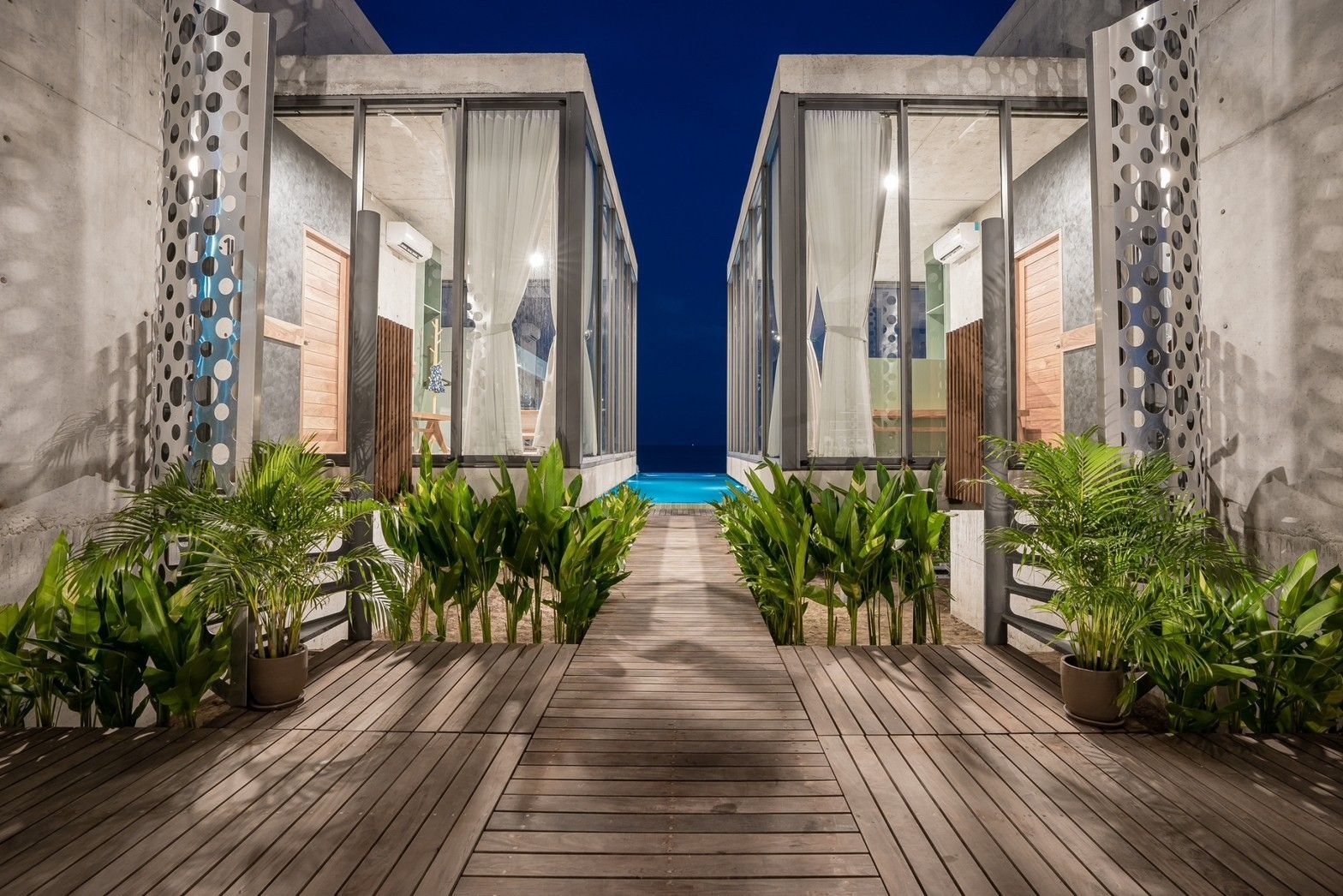 A brand-new beachfront pool villa with direct private beach access and an oversized acrylic-walled pool that makes the sea look like it flows right in. Every bedroom faces the ocean, while the panoramic 180° glass living room dissolves the boundary between indoors and outside. Four bedrooms and five ensuite bathrooms accommodate up to 20 guests, with a full kitchen, karaoke, pool table, BBQ, and Smart TV 85-inch all included. Small pets welcome, parking for up to 7 cars on-site.